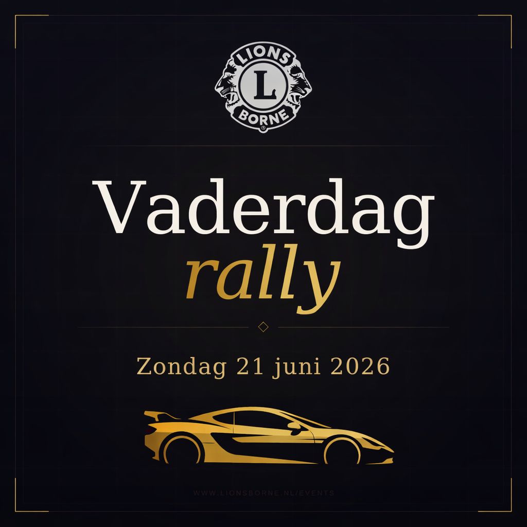 Op zondag 21 juni 2026 is het opnieuw raak. Lionsclub Borne organiseert de 12e editie van de Vaderdagrally: een dag vol spanning achter het stuur, langs de mooiste plekken van Twente. Van een spectaculair Grand Départ bij Munsterhuis Sportscars in Hengelo tot een stijlvol Pricegivingdinner bij Kir Diner X Bar. En daartussenin? Een verrassing die we liever ter plaatse onthullen.